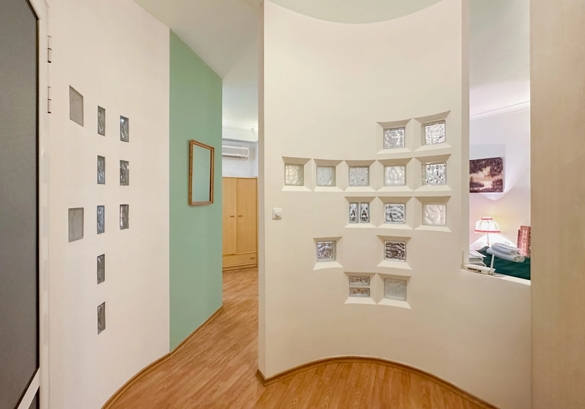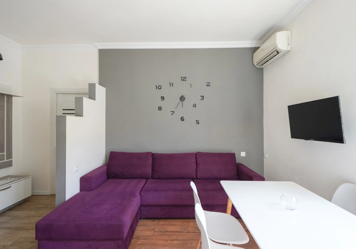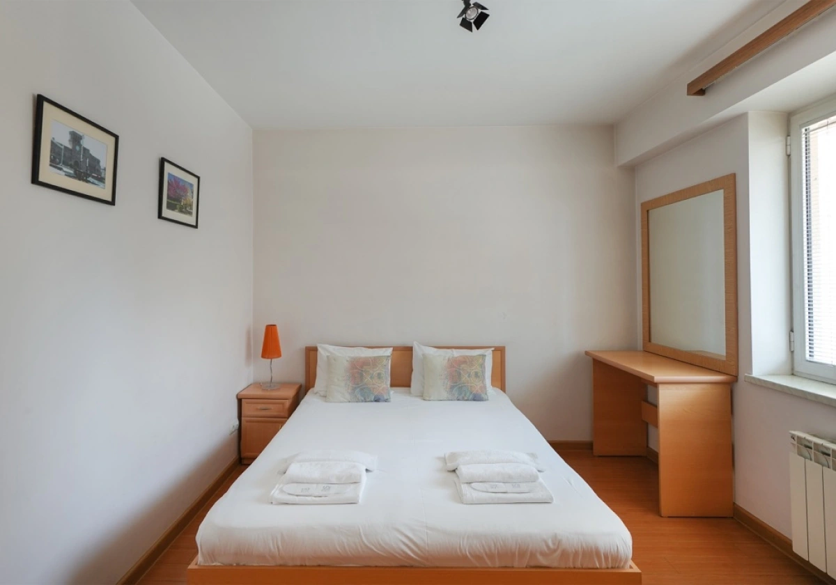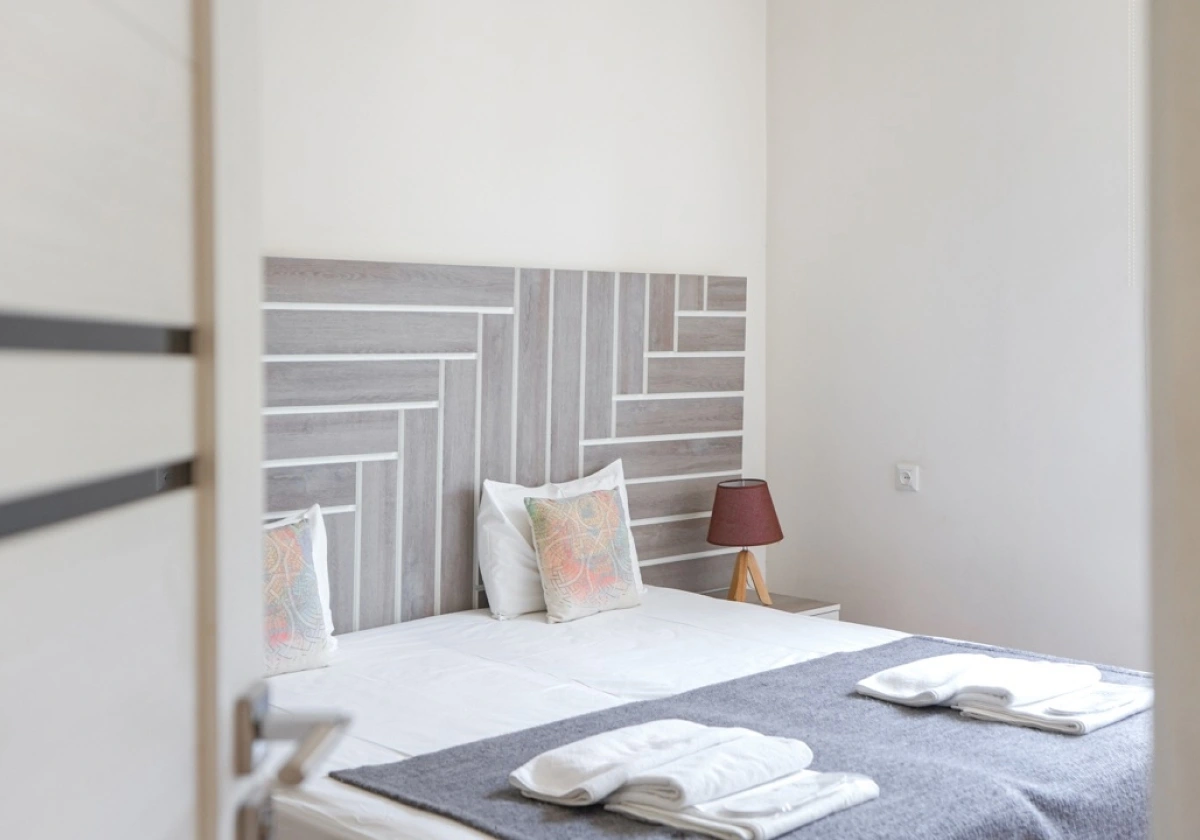 Exceptional 40 sqm one-bedroom apartment on the 2nd floor of a 5-story stone building (no elevator), featuring a luxurious king-size bed (200 cm).
